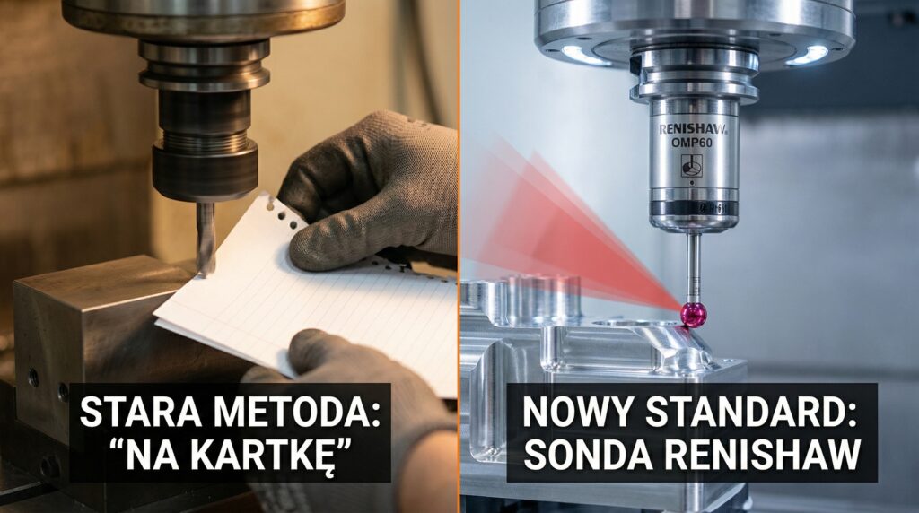 Kawałek papieru ze starego rysunku, odrobina chłodziwa, by przykleił się do detalu, wrzeciono na 500 obrotów i powolny, nerwowy zjazd kółkiem w osi Z, aż papier „zadrży”. Brzmi znajomo? W wielu polskich zakładach to wciąż podstawowa metoda łapania zera detalu. Jednak gdy wyjedziesz do Holandii, próba bazowania maszyny „na bibułkę” skończy się w najlepszym razie uśmiechem politowania u technologa.